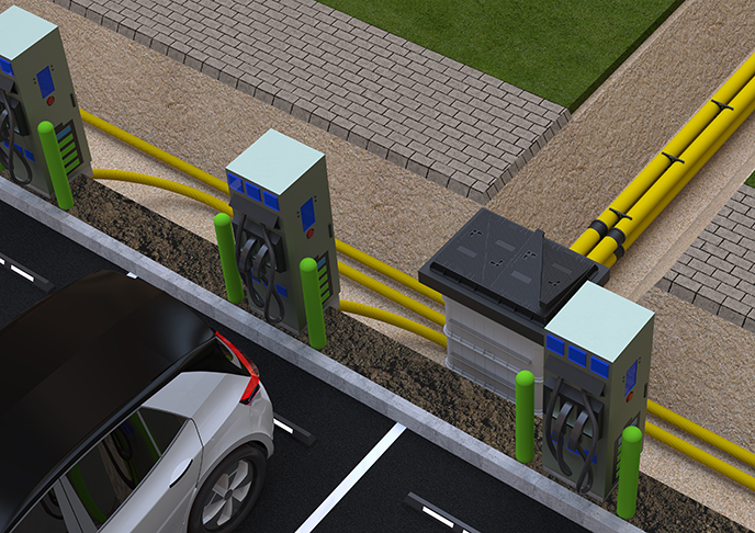 Suure võimsusega laadimisjaamad elektriautodele sealhulgas kaablite sidekaev (100kW<360kW)
