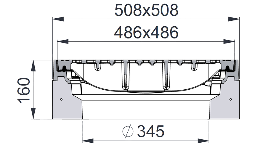 Statsionaarne betooniga kaevuluuk, ilma ventilatsioonita, raam kapseldatud betooni, hooldusava 345 [mm], EN124.